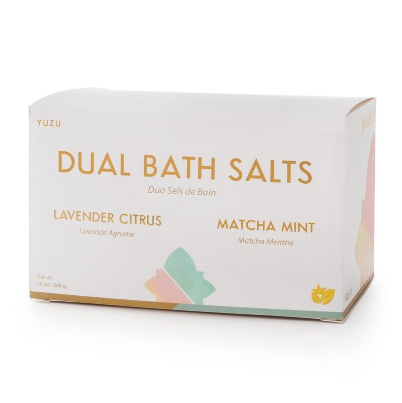 Our set includes 6 oz of Lavender Citrus Salts and 6 oz of Matcha Mint Salts.